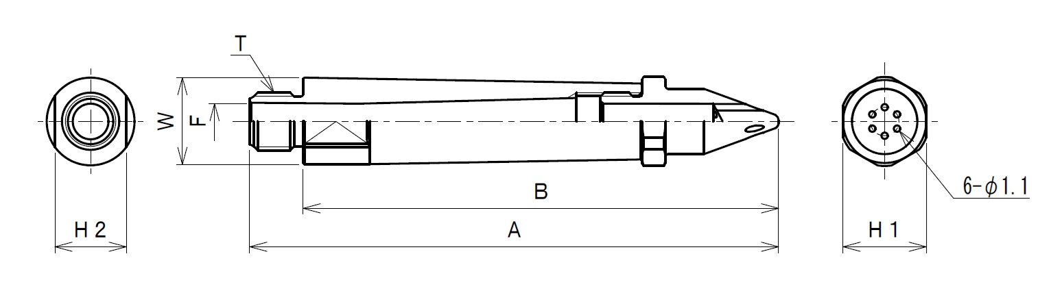 | 型式 | 接続ねじ(T) | 接続ねじ(T2) | A | B | φF | H | W | 材質 | 重さ |
