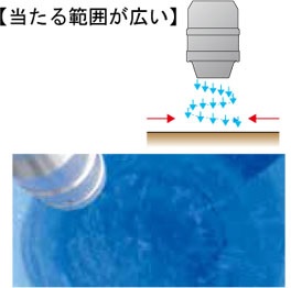 | 間欠波動による効果でエアー衝撃を繰り返しますので、窪みに溜まった水などを叩き出すことができます。 | エアーでただ押している事になりますので、水は段差を乗り越えられず窪みに残ります。 |